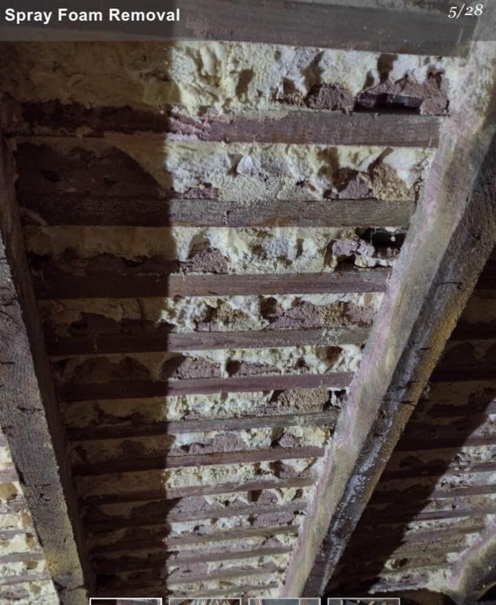 ✅ We begin with a thorough inspection conducted by our experienced surveyors to accurately assess the type of spray foam, its extent, and any potential structural damage.